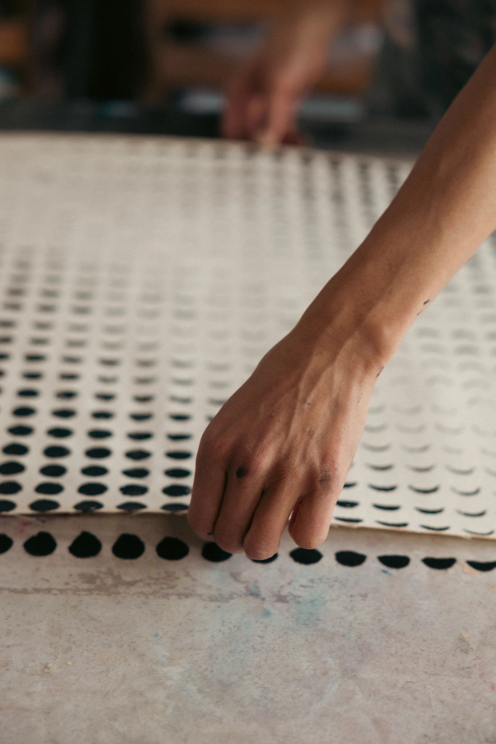 Sole Kulnarong es la artista detrás de Less Filling, una marca ibicenca de serigrafía que fusiona los colores vivos en los estampados con la simplicidad en sus formas y diseños. La serigrafía es la técnica que define su identidad, ya que con ella crea todo el diseño textil de la marca de forma artesanal. De visita en su taller registrando el proceso de la estampación del bolso con el ciclo de las lunas, publicado en las revistas «Ibiza Art Guide» y «Pressing matters» en 2025.